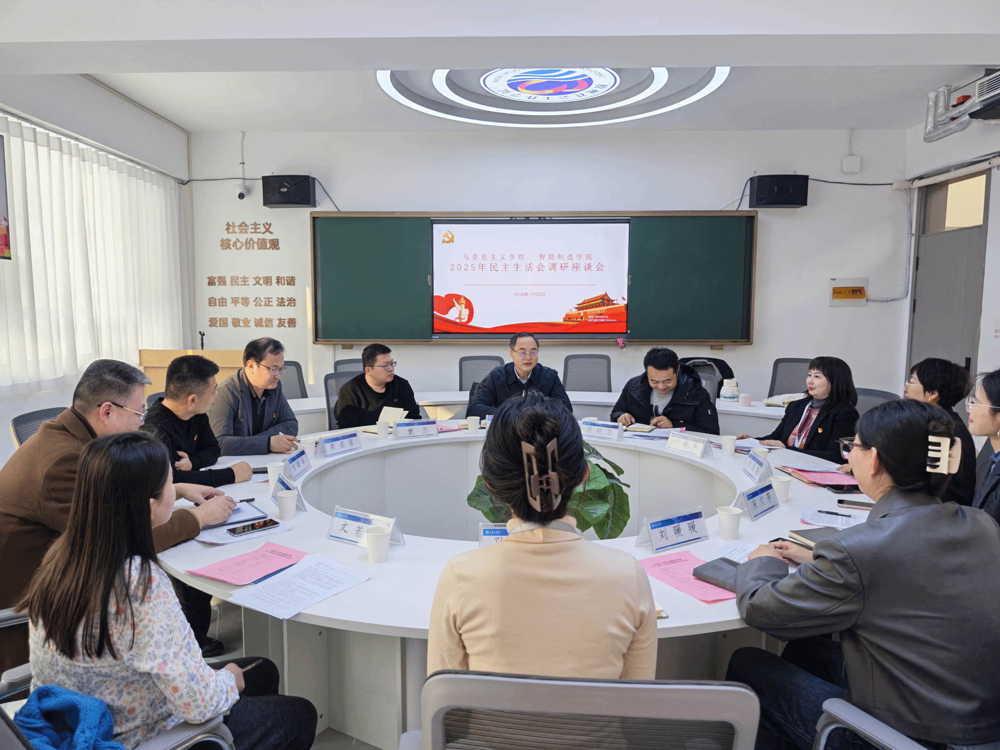 1月23日下午,学校在美育中心M213召开马克思主义学院与智能制造学院民主生活会调研座谈会。马克思主义学院党总支书记周晓东,副院长刘晓燕、宋文芳,党总支副书记付国花、中国近现代史纲要教研室主任刘暖暖,智能制造学院党总支书记姜昌雷、党总支副书记陈敏军、团总支书记文若思、教工党支部书记王磊、电气工程及其自动化教研室主任孙舒舒参加会议。校党委书记李军主持会议。