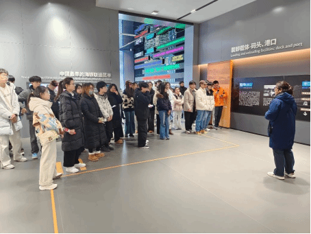 在参观与学习过程中,同学们还重点关注了智慧港口在绿色低碳发展和安全生产方面的技术实践。通过工作人员的讲解,大家对智能监控系统、能耗管理平台以及风险预警机制有了更加直观的认识,进一步体会到人工智能技术在提升生产效率、保障作业安全和推动可持续发展中的重要作用。