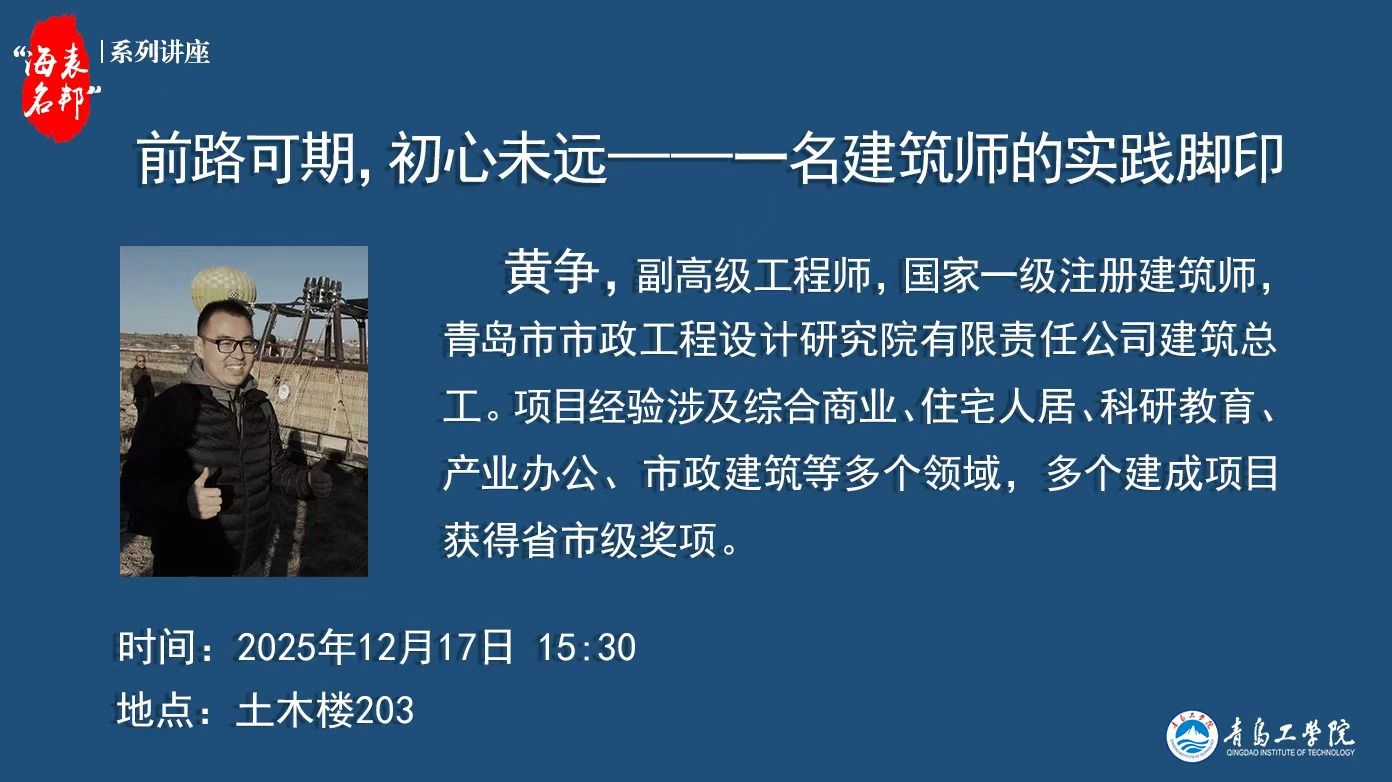 “海表名邦”系列讲座:黄争《前路可期,初心未远——一...