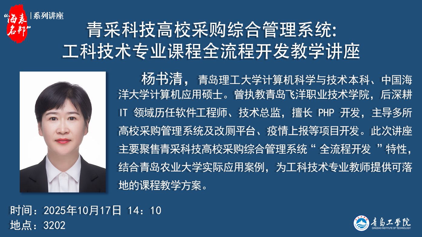 “海表名邦”系列讲座:杨书清《青采科技高校采购综合管理系统:工科技...