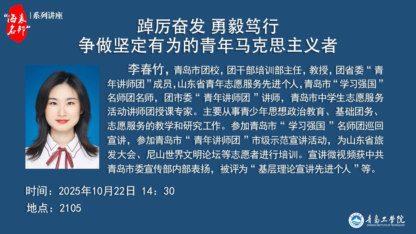 “海表名邦”系列讲座:李春竹《踔厉奋发 勇毅笃行——争做坚定有为的青...
