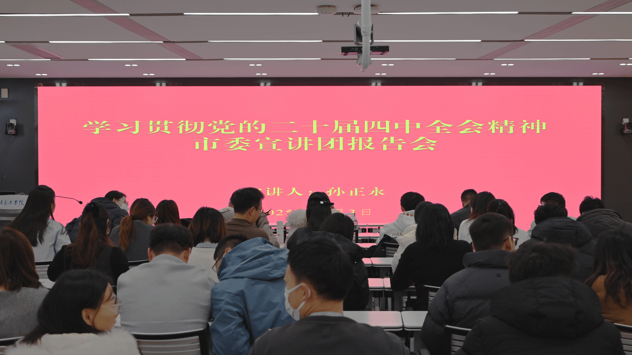 根据市委统一部署,12月3日下午,学习贯彻党的二十届四中全会精神市委宣讲团报告会在青岛工学院4315学术报告厅举行,市委宣讲团成员,胶州市委组织部副部长、市人力资源和社会保障局党组书记、局长孙正永作宣讲报告,推动全会精神落地落实,并与学校师生面对面互动交流。