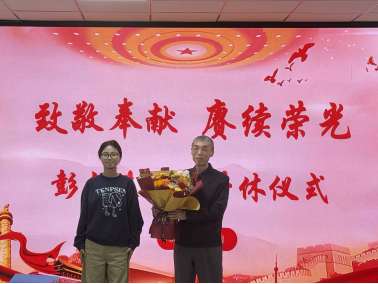 在温馨庄重的氛围中,李占军为彭文进教授颁发荣休纪念品。教师代表夏骁琳分享了与彭教授共事中其严谨务实、倾囊相授的感人点滴;学生代表献上鲜花,表达对恩师谆谆教诲的感恩与不舍。