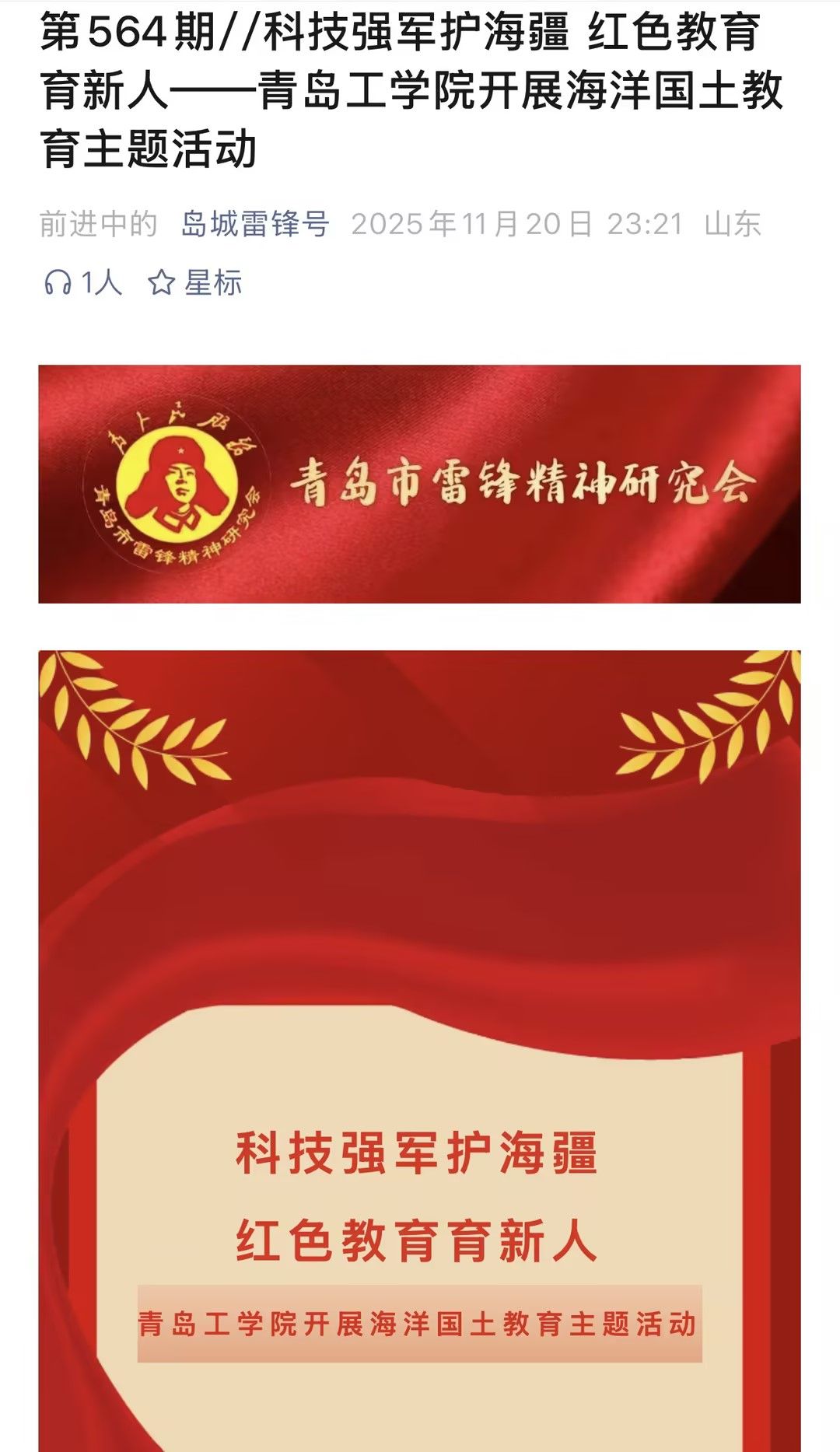 《岛城雷锋号》丨科技强军护海疆 红色教育育新人——青岛工学院开展海洋国土教育主题活动