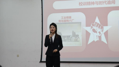 李垚同学以校训“胸怀天下,造福人类”为核心,通过回望青岛革命烈士纪念馆的展品与历史场景,深情讲述了抗战时期青岛人民与师生守护工业根基、传承知识火种的感人故事。她认为,这些普通人用行动诠释了校训精神,证明了“造福人类”是每个个体在时代中的自觉。最后,她呼吁新时代大学生应将校训内化于心、外化于行,用青春续写“校训故事”。