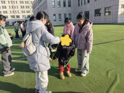 “跟着节奏转圈圈,音乐一停站圈圈!”动感的旋律随即响起,针对性格内心的孩子,学生们主动牵起他们的小手,一起踩着节拍缓缓晃动呼啦圈。当音乐一停,孩子们立刻忙碌着寻找圆圈站稳,现场充满童趣。随后的报颜色领沙包环节更是热闹,领到沙包的孩子们眯起眼睛瞄准纸箱投掷,沙包时而精准入箱、时而调皮落地,在这嘻嘻哈哈的反复尝试中,孩子们的听觉敏感度与手眼协调能力在潜移默化中得到了进步。