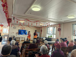 抵达养老院后,学生们迅速分工、明确职责、有序推进,完成场地安全隐患排查、物资分类摆放等筹备工作,确保活动环境契合老年人身体机能与活动安全适配要求。随着老人们平稳入座,“惊喜盲盒”主题活动正式开启。在“快乐舞蹈”环节,学生们以活力满满的表演营造出轻松愉悦的氛围,借助正向互动拉近代际距离;手工折纸“冰糖葫芦”环节,采用“一对一陪伴+协助式指导”模式,学生们在协助老人使用工具、完成创作的过程中,运用倾听式沟通引导老人分享生活经历,既锻炼了老人动手能力,又满足了老人情感需求;“纸牌魔术”环节,则通过趣味互动与即时正向反馈,激发老人参与热情,缓解其晚年生活的孤独感;“卡片祝语”环节,学生们逐一朗读饱含关切的个性化祝福,以情感支持传递社会温情,让老人们在字里行间感受到尊重与关怀。
