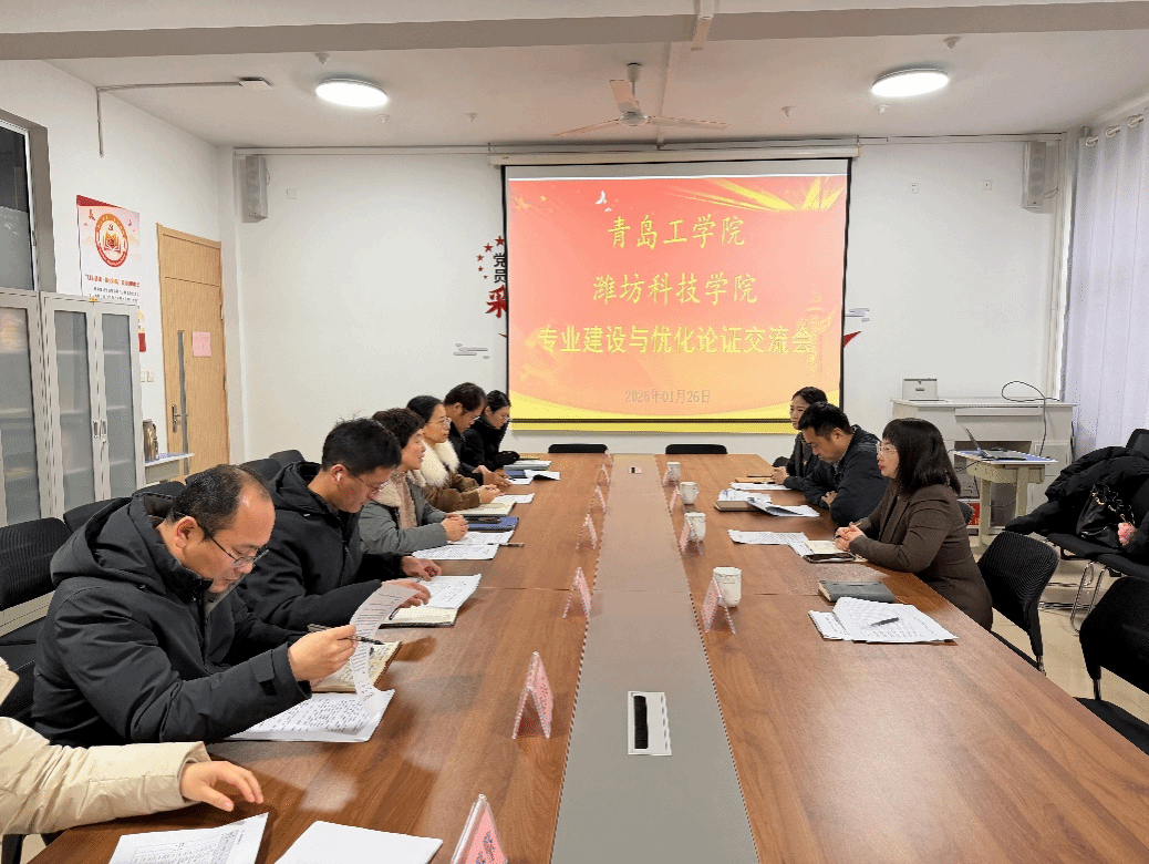 为落实学校2026级本科专业人才培养方案修订调研要求,精准对接新文科建设与区域社会治理人才需求,2026年1月26日,青岛工学院马克思主义学院党总支书记周晓东,副院长刘晓燕、宋文芳,社会工作教研室主任陈春晓一行赴潍坊科技学院,开展社会工作专业建设与优化论证交流会。双方围绕专业建设、人才培养、实践教学等内容展开深入研讨,推动专业高质量发展。