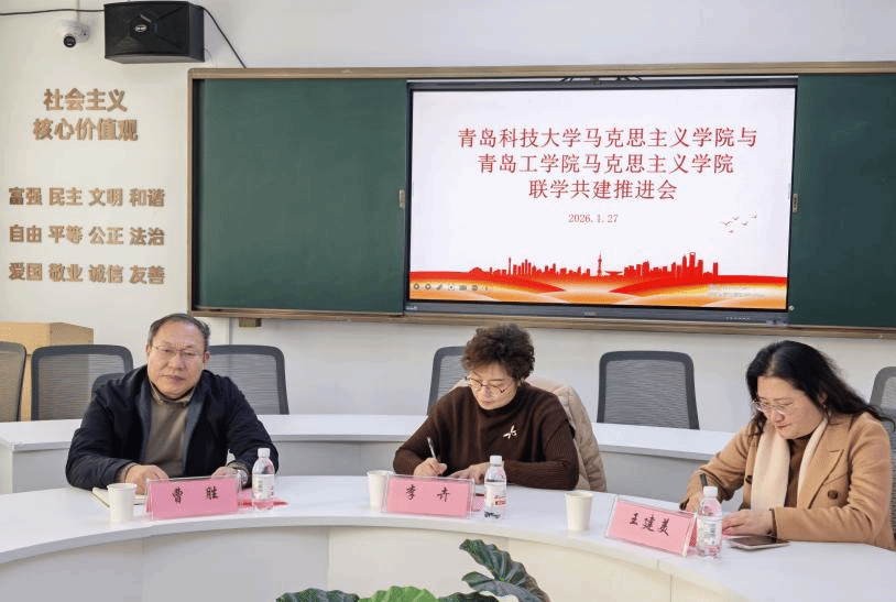 会上,曹胜介绍了青岛科技大学马克思主义学院在学科建设、师资队伍、教学科研、社会服务等方面的基本情况与特色成果。他指出,学院近年来充分发挥山东省首批重点马克思主义学院、全省重点马克思主义学院立项建设单位的优势,持续优化学科布局,强化高层次人才引育,深化思政课教学改革创新,在国家级科研项目、高水平学术成果等方面取得系列进展,逐步形成了具有自身特色的学科生态和育人体系。他表示,期待以此次共建为契机,进一步拓展两院合作的深度与广度,共同推动马克思主义理论学科建设和思政育人工作协同发展、相互促进。