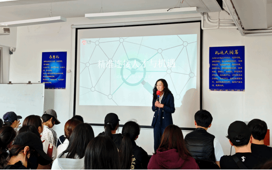 实习伊始,公司人力资源总监余晓妍作为企业导师围绕公司发展历程、核心定位、业务领域等展开详细介绍,让同学们全面了解亿猎从单一猎聘服务向一站式人才解决方案升级的发展路径。同时,系统讲解了猎头行业发展现状、核心价值与未来趋势,以及猎头全流程服务框架,让学生了解人力资源服务的标准化运作模式。