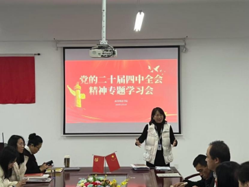 为持续深化对党的二十届四中全会精神的理解与把握,切实把思想和行动统一到党中央决策部署上来,12月24日,青岛工学院商务外语学院教工党支部组织召开了第二次党的二十届四中全会精神专题宣讲会,此次活动由宣讲团教师赵悦宣讲,教工党支部书记姚婷主持,学院全体教师党员参与。