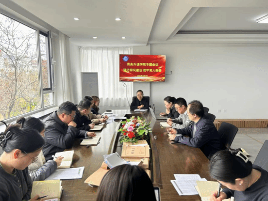 为进一步夯实育人质量、统筹推进学风建设与毕业季重点工作,4月9日下午,商务外语学院在1302会议室召开“强化学风建设,筑牢育人根基”专题会议。学院院长于慧丽主持会议,各专业负责人、教研室主任及辅导员参加会议。