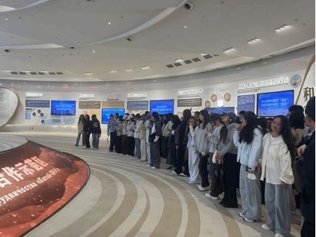 在参观过程中,同学们热情饱满,兴趣浓厚。每走入一个国家的主题展馆,大家都带着好奇与欣喜,主动驻足,细细品味各国的风土人情、特色产品以及跨境电商的合作潜力。在沉浸式的观展体验中,大家的国际视野得以拓展,对电商专业方向的理解也变得更加生动具体。参观结束后,许多同学纷纷反馈,展馆内容充实、亮点频现,这次实习让自己对专业学习的方向更加明确。返程途中,大家仍觉意犹未尽,纷纷表示希望能有更多机会深入了解上合示范区的产业动态。