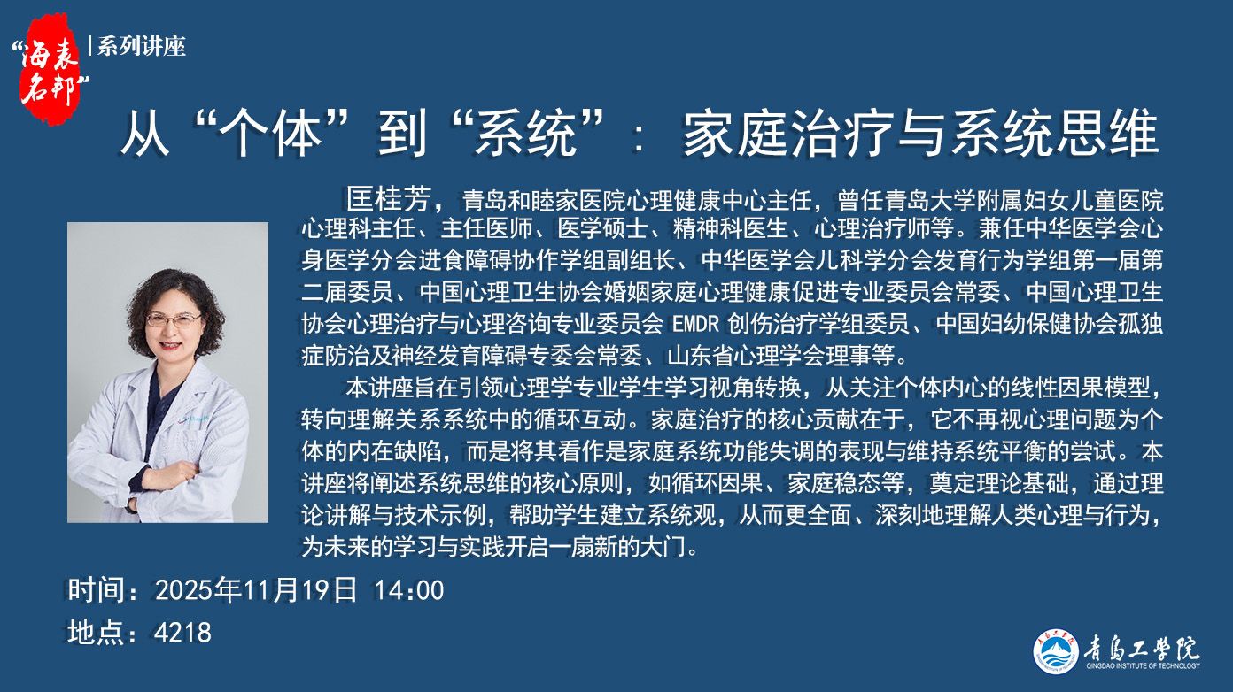 “海表名邦”系列讲座:匡桂芳《从“个体”到“系统”:家庭治疗与系统...
