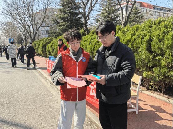 活动现场,学生工作部工作人员与胶州市医保局业务骨干化身“政策讲解员”,通过悬挂宣传横幅、发放宣传手册、设置咨询展台、现场答疑解惑等多种形式,围绕大学生参保缴费标准、医保待遇享受、门诊及住院报销流程、异地就医备案等核心政策进行细致解读。针对同学们普遍关心的医保电子凭证激活使用、校外就医报销材料、参保信息变更等热点问题,工作人员耐心提供一对一精准解答,用通俗易懂的语言把专业政策讲清楚、说明白,确保同学们听得懂、能理解、会运用。