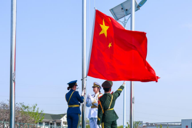 入场式后,伴随着庄严的国歌声,五星红旗冉冉升起,国旗高扬,国歌嘹亮,全体师生向国旗行注目礼。