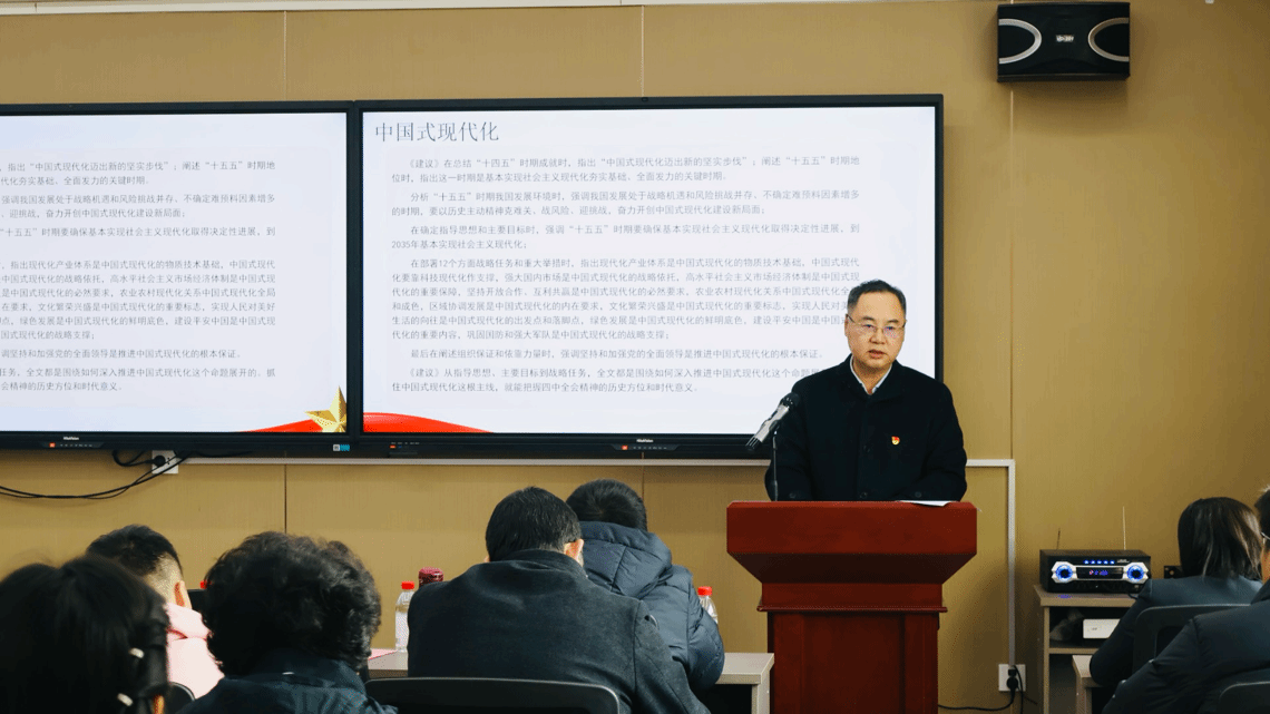 宣讲中,李军书记紧扣党的二十届四中全会主题,首先简要阐释了全会召开的时代背景、核心要义和实践要求等基本情况,随后围绕中国式现代化、共同富裕、以经济建设为中心、科技创新、文化强国五个关键维度,对全会提出的重大思想、重要论断进行了系统阐释与深入解读。他强调,高校作为人才培养、科学研究、社会服务的重要阵地,必须把学习贯彻全会精神与落实立德树人根本任务紧密结合,坚守为党育人、为国育才初心使命。马克思主义学院作为思想政治教育的主阵地,要在理论阐释、课堂教学、实践育人中走在前面,引导师生深刻领悟“两个确立”的决定性意义,增强“四个意识”、坚定“四个自信”、做到“两个维护”。