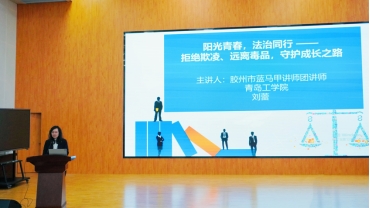 本次活动特邀胶州市“蓝马甲”讲师团讲师、青岛工学院马克思主义学院法学副教授刘蕾担任主讲人。讲座以“阳光青春,法治同行——拒绝欺凌、远离毒品,守护成长之路”为核心主题,精准契合初中生成长阶段的法治需求,内容兼具专业性与实用性。刘蕾副教授依托深厚的法学理论功底与丰富的普法实践经验,以通俗易懂的语言、贴近校园生活的典型案例,将抽象的法律知识转化为生动的成长指南。