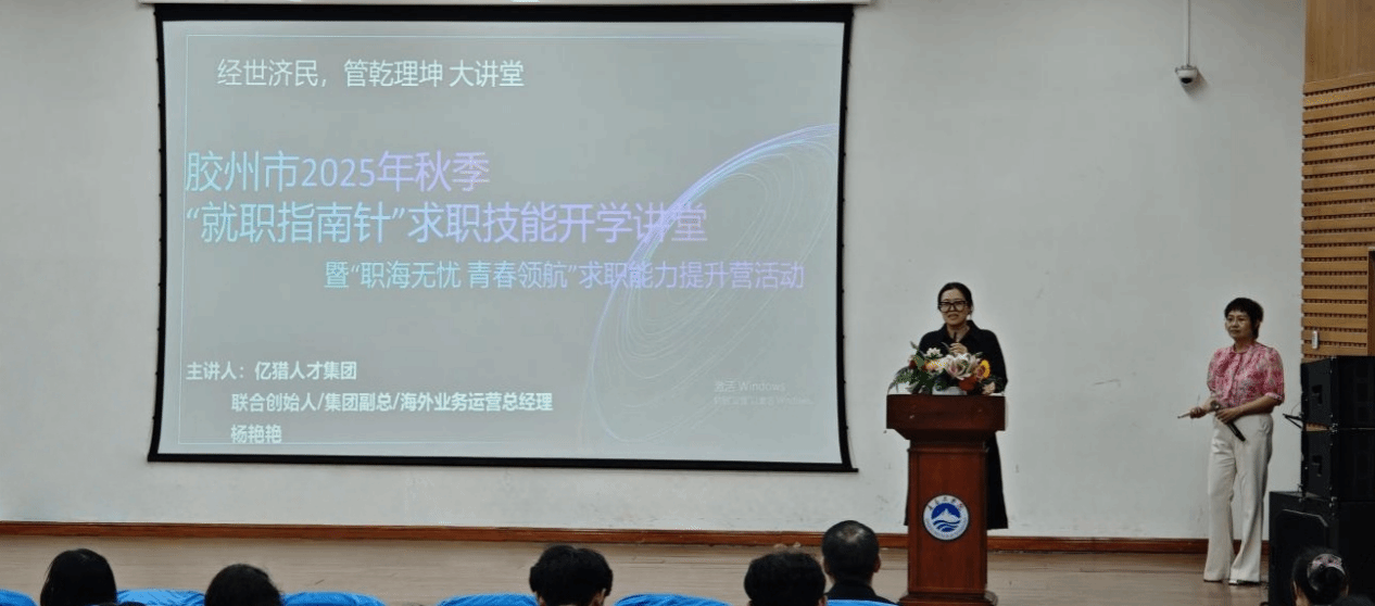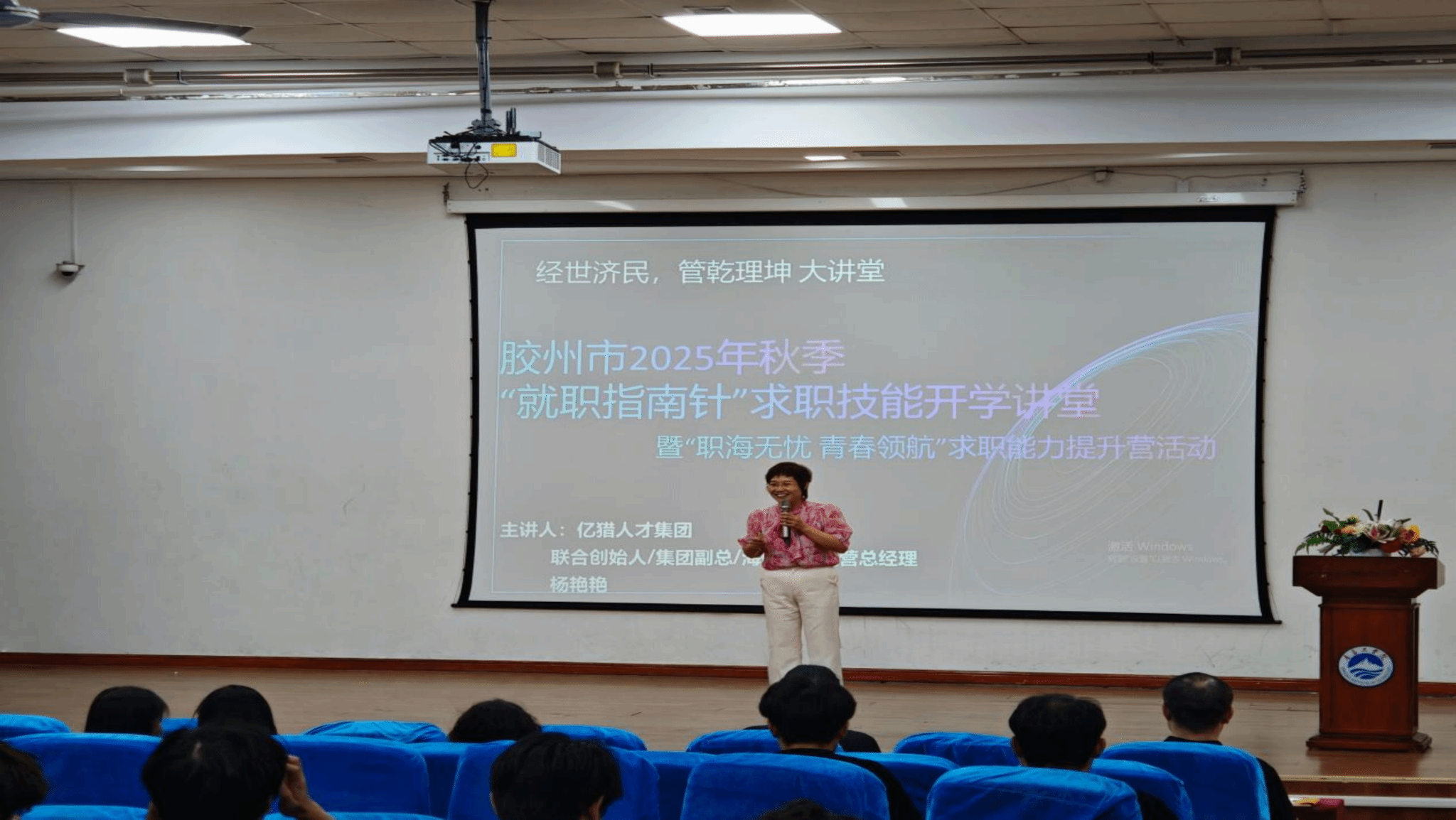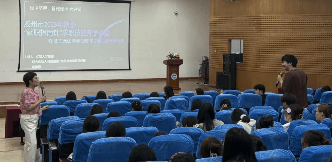 为深化产教融合,拓展学生行业视野,助力人力资源管理专业学子明晰职业发展方向,近日,经济管理学院举办“经世济民,管乾理坤”大讲堂系列讲座。本次活动作为胶州市2025年秋季“就职指南针”求职技能开学讲堂暨“职海无忧·青春领航 求职能力提升营的重要组成部分,特邀亿猎人才集团联合创始人杨艳艳,胶州市人力资源发展促进会会长、祥洱汇(山东)大数据科技有限公司总经理赵子常,扬子国际总经理李友林、总监王帅四位行业专家,围绕职业规划三要素、人力资源科技新趋势、人力资源甲方与乙方职业发展、猎头行业价值等主题展开分享,为人力学子点亮职业航向。经济管理学院姜中杰副院长主持了本次活动,深化政校企行四方协同。