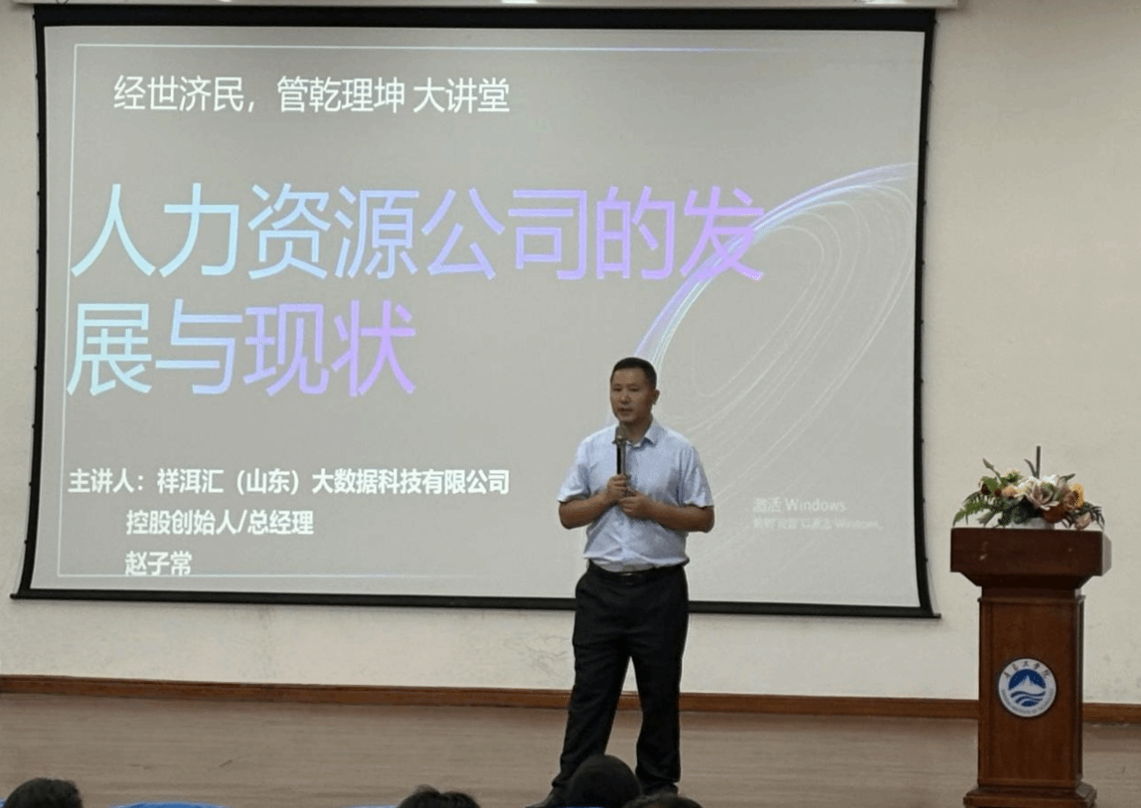 赵子常以《人力资源公司的发展与现状》为主题,从行业规模、技术变革、市场格局等维度,系统介绍了人力资源行业的发展全景。并结合其公司为实践案例,帮助学生从企业实际运营角度,更直观地理解人力资源公司的组织管理与人才发展路径。他建议学生关注半导体、新能源等高端人才缺口领域,提前储备数字化技能。