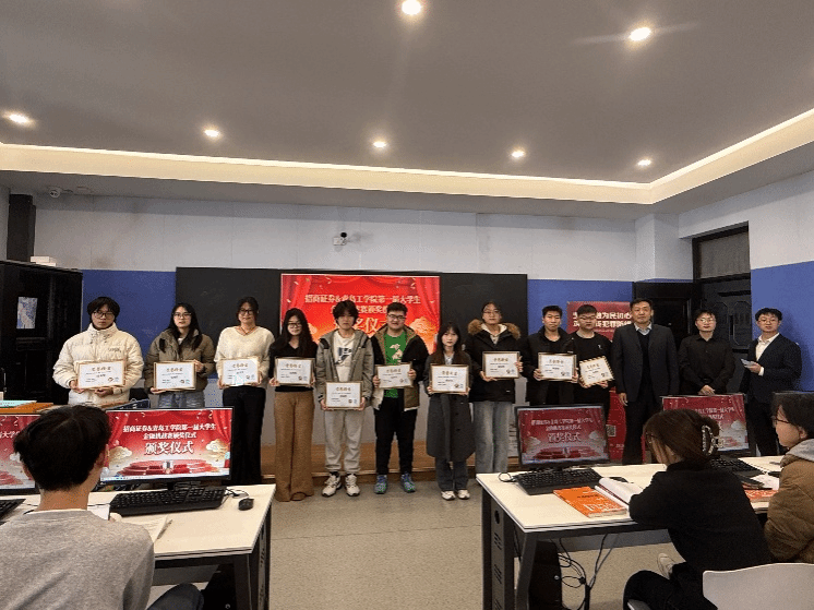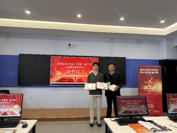 2025年12月19日上午,青岛工学院经济管理学院与招商证券胶州营业部联合举办的首届“金融挑战赛”颁奖典礼在智能风控实验室举行。本次大赛以“知行合一,融创未来”为主题,吸引了众多学生积极参与。经过为期三个月的模拟交易、案例分析与答辩展示,最终评选出19名获奖者,包括一等奖兼最佳表现奖1人、二等奖3人、三等奖5人及优秀奖10人。本次活动充分展现了校企协同育人的创新模式,推动了金融理论与实践教学的深度融合。