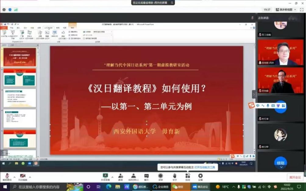 为深入推进《习近平谈治国理政》多语种版本“三进”工作,构建外语人才培养的新格局,9月22日至25日,在院长于慧丽的组织带领下,我院英语、日语、德语教研室全体教师参加外研社举办的虚拟教研室活动,进行专题学习。推动学院教师深入理解“理解当代中国”系列教材的整体理念和教学要求,准确把握教材核心内容和教学方法,积极落实高校立德树人的根本任务。