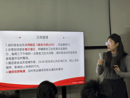会上,各年级辅导员聚焦学生社区工作助理的核心职责,围绕日常管理、安全监督与学风建设三大模块展开系统培训,并对全体助理提出明确要求:一要带头示范,严格遵守作息制度,主动维护公共环境,自觉践行文明公约;二要筑牢防线,常态化开展安全隐患排查,密切关注同学思想动态,做到早发现、早报告、早干预;三要推动学风,积极营造勤学互助、奋发向上的宿舍学习氛围,激发集体成长内生动力。会议强调,全体学生社区工作助理要进一步增强责任意识,主动担当作为,努力成为宿舍安全的坚实守护者、文明行为的积极引领者、和谐关系的主动促进者。