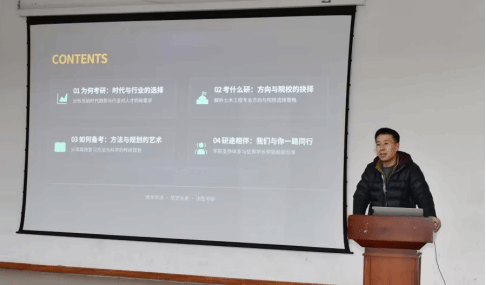 会上,各专业教师首先从宏观角度深入剖析当前考研形势,强调前置规划的重要性,引导学生理性择校。在此基础上,老师们进一步立足学科特点系统梳理本专业的考研核心方向、热门院校及历年录取概况,并就核心科目、备考重点及学科特色进行详细解读。为进一步增强学生的直观认知,现场结合往届学子的典型案例,引导同学们从真实经验中洞悉考研整体态势,精准识别备考关键痛点,并提出切实可行的备考规划。