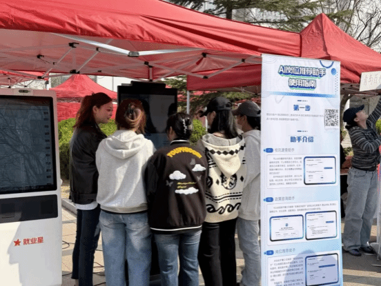 招聘会现场人头攒动、气氛热烈,学子们求职积极性高涨,手持精心准备的简历,穿梭于各个展位之间,主动与企业招聘人员沟通交流,了解岗位详情、薪资待遇和发展前景。学校创新就业服务模式,启用智能AI系统为毕业生提供专属服务,依托AI技术完成简历诊断、岗位精准匹配、面试技巧指导等工作,大幅提升求职效率,让学子求职更省心、更精准,凸显了智能化的时代特色。