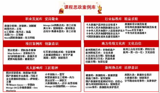 课程围绕科技创新与学科前沿,结合课堂理论教学与课内实践操作,实现知识传授与价值引领的深度衔接。在此基础上,进一步将国内操作系统“卡脖子”技术、国产数据库“三座大山”“棱镜门”等典型案例,与非结构化数据存储专业知识有机结合,同时拓展黄河文化、地方传统文化、长征精神及奥运精神等内容,丰富和完善课程思政资源库。