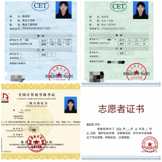 备考期间,她一次性通过大学英语四六级、全国计算机等级考试,先后荣获国家励志奖学金、省政府励志奖学金,多次获评校级优秀学生。这份沉心向学、持之以恒的品质,成为她考研路上最坚实的底气。