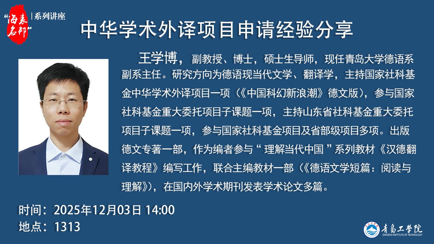 “海表名邦”系列讲座:王学博《中华学术外译项目申请经...