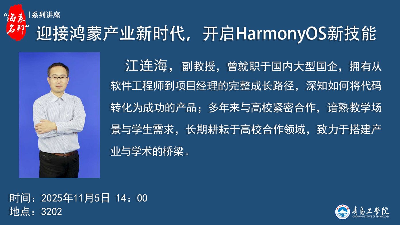 “海表名邦”系列讲座:江连海《迎接鸿蒙产业新时代,开启HarmonyOS新技能》