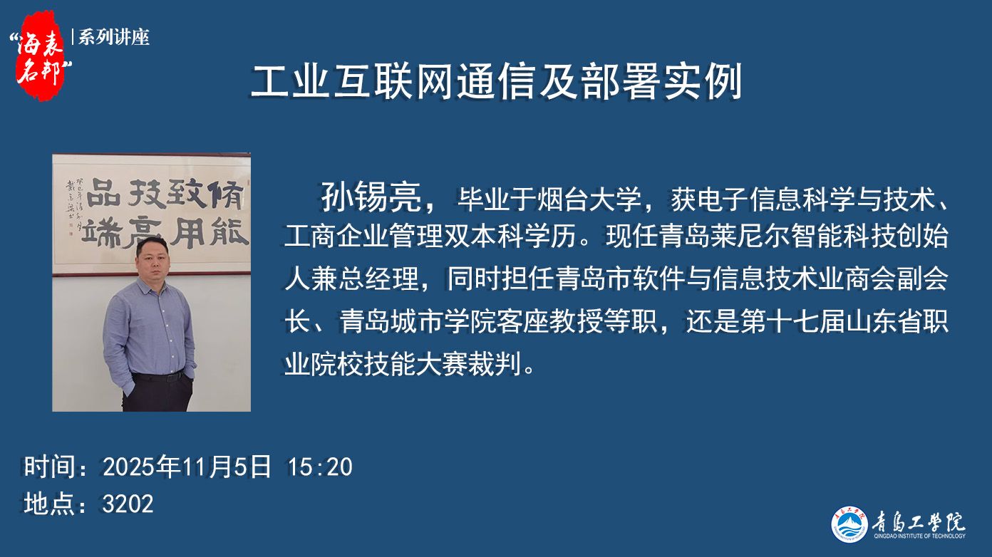 “海表名邦”系列讲座:孙锡亮《工业互联网通信及部署实例》