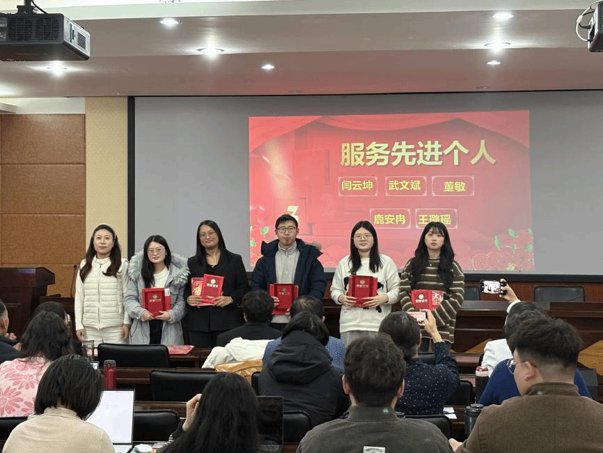第二篇章“表彰先进”环节亮点纷呈。刘晓燕副院长宣读表彰决定,对全院各类先进集体与个人予以嘉奖。本次表彰覆盖16项荣誉类别,包括马院辅导员团队等优秀团队、社会工作专业教师团队最美团队、知识产权教研室等优秀教研室,以及解涛等优秀课程负责人、太雪梅等科研先进个人、刘春燕等师德标兵、杨晨等教坛新秀、金英爱等优秀导师、孙淑琦等优秀党务工作者、陈京伟等优秀教学督导、郝明扬等评估优秀教师、刘晓春等评估突出贡献奖获得者,全方位树立起崇德向善、争先创优的鲜明导向。院领导为获奖集体与个人逐一颁奖,现场掌声阵阵,每一次掌声都饱含着对先进典型的认可与殷切期许。