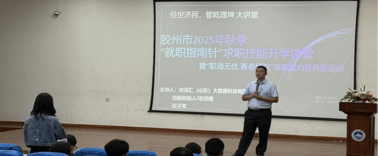 为深化产教融合,拓展学生行业视野,助力人力资源管理专业学子明晰职业发展方向,近日,经济管理学院举办“经世济民,管乾理坤”大讲堂系列讲座。本次活动作为胶州市2025年秋季“就职指南针”求职技能开学讲堂暨“职海无忧·青春领航 求职能力提升营的重要组成部分,特邀亿猎人才集团联合创始人杨艳艳,胶州市人力资源发展促进会会长、祥洱汇(山东)大数据科技有限公司总经理赵子常,扬子国际总经理李友林、总监王帅四位行业专家,围绕职业规划三要素、人力资源科技新趋势、人力资源甲方与乙方职业发展、猎头行业价值等主题展开分享,为人力学子点亮职业航向。经济管理学院姜中杰副院长主持了本次活动,深化政校企行四方协同。