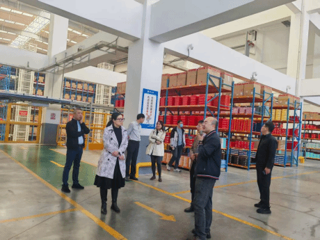 活动伊始,姜中杰一行在企业领导陪同下,实地参观了公司展览区及核心运作设施,参观了自动化立体仓库、物流可视化平台等现代化设施,深入了解了智慧物流与供应链管理在企业运营中的实际应用。