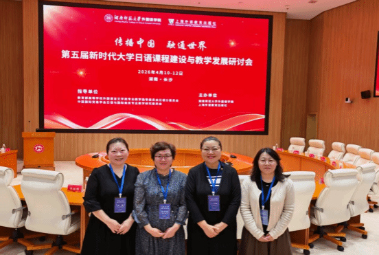 为深入推进日语专业教学改革与创新发展,精准对接国家“十五五”外语教育规划与数智化教学转型要求,2026年4月10日—12日,商务外语学院院长于慧丽、日语教研室主任徐楠及两位日语教师赴湖南长沙,参加由湖南师范大学外国语学院、上海外语教育出版社联合主办的第五届新时代大学日语课程建设与教学发展研讨会。